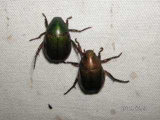 【中】アオドウガネ(色は緑っぽいものから茶色っぽいものまでいろいろです)