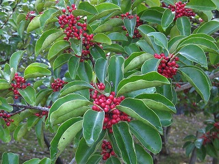 【左】オオシロカラカサタケ 【中】コムラサキシキブ 【右】クロガネモチ