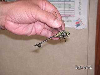 【左】ヤマトシジミ       【中】アオモンイトトンボをゲットしました       【右】採集したトンボを説明しています
