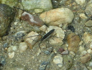 【左】メダカハネカクシ類(平戸池の岸辺に一杯いました)      【中】アメンボ      【右】ムラサキシジ