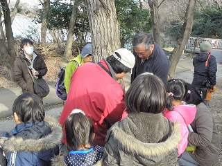 【左】コナラの蜜、味見 【右】平戸池の鳥を観察