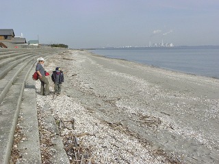 【左】飛び入りで観察して、大喜び           【中】布土川河口で観察           【右】海岸に貝殻がたくさん打ち上げられていました。