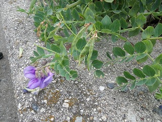 港のすぐ北、堤防の内側にハマエンドウ(花)昨年より花の数も多く、サヤもできていた。