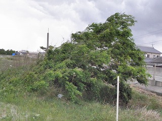 【右】エノキ(風の影響で横に成長している)