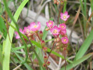 イシモチソウ コモウセンゴケ モウセンゴケ、 コケリンドウ ネジバナ ミヤコイバラ イ ガマ チガヤ ミヤコグサ ニワゼキショウ オオニワゼキショウ ノアザミ ベニバナセンブリ ナワシロイチゴ ハチク ツリガネニンジン イヌノフグリ シロツメクサ キツネノボタン コメツブウマゴヤシ ジシバリ ハハコグサ シラン ワレモコウ ヒカゲノカズラ カワラマツバ ワラビ テリハノイバラ ノイバラなど