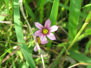 【左】ミヤコグサ 【中】アヤメの仲間のニワゼキショウ 【右】オオニワゼキショウ