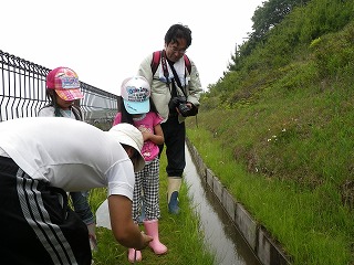 9時30分に公民館Pに集合し、小鈴谷の愛知用水沿いに車で移動しました。 水資源開発公団と交渉をして、用水路上部の側面を一部残してもらったおかげで、イシモチソウの白いお花を今年もたくさん見ることが出来ました。コモウセンゴケもピンクの小さな花をつけていましたが、モウセンゴケはまだ咲いておらず、開花はもうすこし先のようでした。子供たちも、湿地の植物をみたり、昆虫やカエルを追いかけて、用水路横の側溝でタモでザリガニやおたまじゃくしを捕まえることができました。今年も無事に食虫植物が見ることができ楽しいひと時を過ごすことができました。普段目にする何気ない景色にも、いろんな動植物が見られる良い季節なので、機会を見つけて、身近な生き物を探したり、よく観察してみたいですね。(記・斉上)