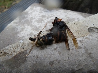 【左】接着剤を塗布したトラツプ 【中】捕捉されたオオスズメバチ ? 【右】捕捉されたコガタズメバチ ?