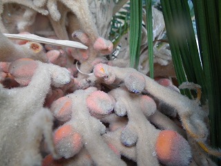 寒さが身にしみて来ましたので早早に観察会を切り上げ、帰り際に開花し結実しつつあるソテツの雌花を観察して解散しました。