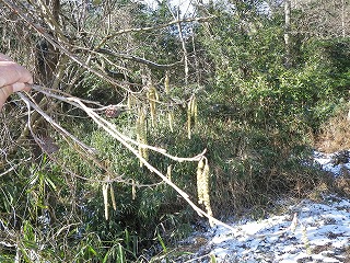 【左】ヤシャブシ雄花穂   【中】   【右】カラスザンショウ (冬枝の種子)