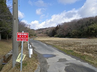 【左】開会挨拶   【中】公園東外縁の鳥獣保護区看板   【右】残雪の中、探鳥会開始