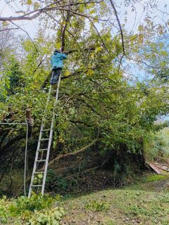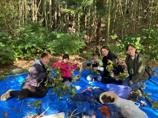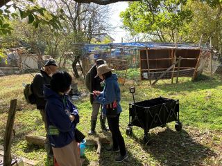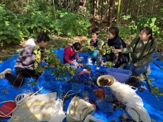 開始の前にツルウメモドキを採り、初めの挨拶後ヤギたちに餌やりをしながらリースの蔓を採りに行った。風が強かったので、竹林の南側でリース作りを始めた。降幡さんが故障していた発電機を持って来て田中央さんが分解清掃して修理していました。指導員がたくさんいたので、今回は思う存分私も政策に集中しました。温暖化の影響でナンキンハゼの実が少なかったが参加人数には程よい量で、みんな素晴らしい出来栄えでした。(記