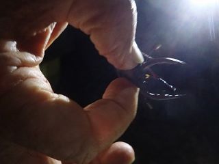 【左】ノコギリクワガタ発見! 【右】灯火採集