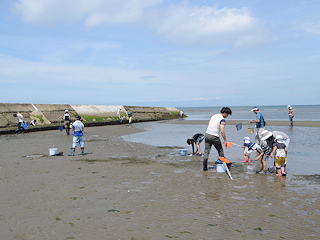 【上】干潟での生き物採集