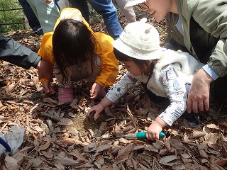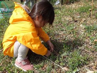 【左】やっとタケノコみーつけた! 【右】分かち合い