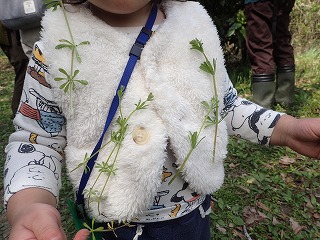 【左】初ワラビ採り 【右】ヤエムグラのブローチ