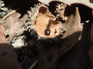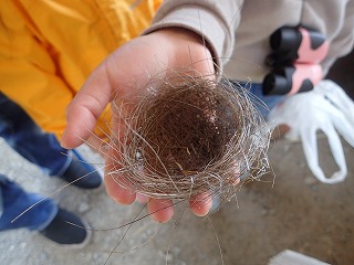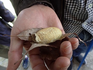 その代わりにカブトムシの幼虫やクワガタを見つけている親子もいた。何年かぶりにヤママユの繭があり、存在を感じることができた。メジロの巣も見つけることができた。コナラの枝にトゲトケで空洞のある虫えいがあり、中を割ってみるとアリとアリの卵らしいものが潜んでいてどこから入ったのかが不思議に感じられた。