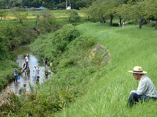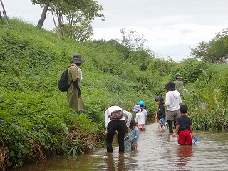 環境課の熱意が天に通じたのか思ったほどの雨は降らず、予定通り観察会が行え、曇り模様で川の上を渡る風も心地よく観察会日和となった。