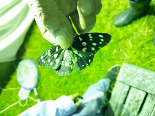 (灯火採集前の昆虫採集) ギンヤンマ、シオカラトンボ、ショウリョウバッタ、ナミアゲハ