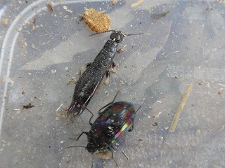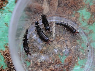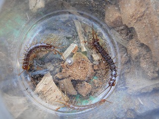 【左】トビズムカデ 【中】ニジイロゴミムシダマシ 【右】ヒゲジロハサミムシ