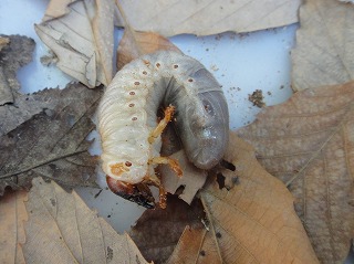 【左】キマワリ 幼虫 【中】コクワガタ 幼虫 【右】コメツキムシ 幼虫