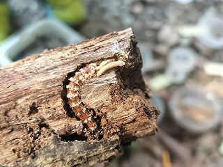 【左】朽ち木解体 観察中 【中】同左 【右】同左