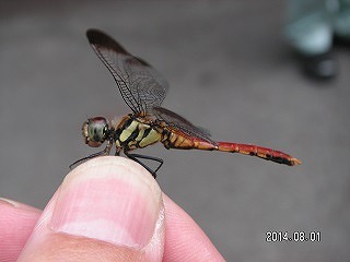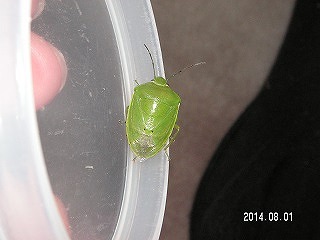 【左】カブトムシを捕ったぞお          【中】ホオズキカメムシ          【右】オオシオカラトンボ♀(林縁にいました)