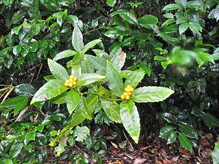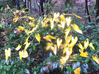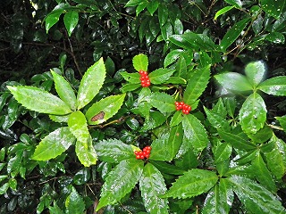 イロハモミジ、オオモミジ、ツワブキ、センリョウ、マンリョウ、シキザクラ、カクレミノ、ヤツデ、スダジイ、ヤマノイモ(むかご付き)、テイカカズラ(果実)、