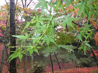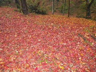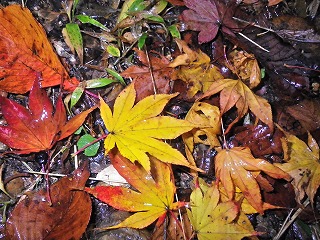 【左】朱僕のイロハモミジ   【中】紅葉の落葉   【右】紅葉のレッドカーペット