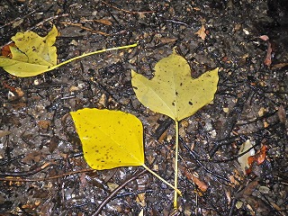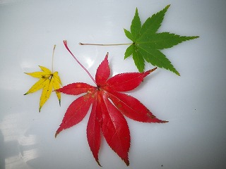 【左】テイカカズラ   【中】カクレミノ葉形比較   【右】紅葉三色