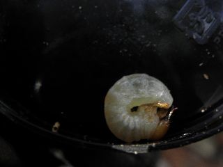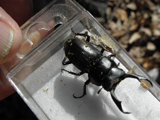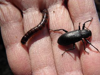 【左】ユミアシゴミムシダマシ(右)とキマワリ幼虫(左) 【右】立派なコクワガタ