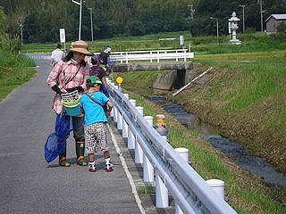 【左】川沿いを橋のたもとまで 【右】思い思いに採集しています