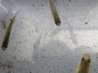 マハゼ、オイカワ、ヌマムツ(婚姻色あり)、スミウキゴリ、メダカ、カダヤシ、ヨシノボリの一種、ドジョウ、ウナギ(約10〜20cm:3〜4個体)