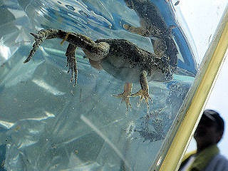 トノサマガエル、ヌマガエル、ウシガエル(幼生)、ミシシッピーアカミミガメ