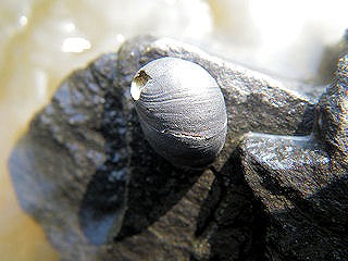 【左】はしごで降りました 【中】親子で協力して採集中 【右】イシマキガイ