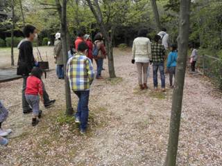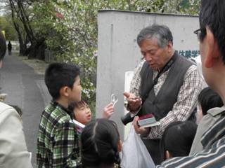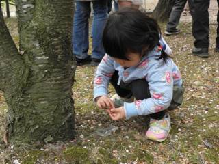 セレトナの会議室で春の植物の説明をしてから出発。サクラの花びらでピンクになった林から出発。パンジーや葉ボタンの花を味わったり、サクラの花の密をなめてみたりしながら進みます。ユキヤナギの花のにおいが青臭かったり、ホトケノザの花の蜜をなめて小さな音の笛にしたり、五感をフルに働かせながら新芽の透き通った緑の中を歩きました。(記・竹内秀)