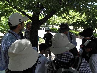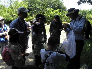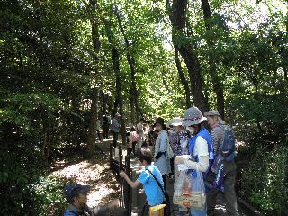 晴れ渡りそよそよ風の吹く気持ちのいい五月晴れ、何組もの親子連れの参加者があった。セレトナの会議室で20分ほど、危険な植物・昆虫や、ツマキチョウの幼虫・ホタルガの幼虫など身近に見られる虫と見つけるポイント、道筋の説明。その後、室外に出て森や草原で採集と観察を行った。エゴノキ花の散ったあとを歩き、落ち葉をめくるとモリチャバネゴキブリやザトウムシ、ヤスデがでてきて、お宝探し。お宝のいるところは自然が豊かなことを教わる。ホタルガの幼虫が上から見ると「ネコバス」にみえたり、オビカレハの幼虫がテレビアニメ(いもむし)ニッキの彼女のモデルであることを確認したりして森の中を進んだ。平戸池の草原ではイトトンボも捕まった。アゲハやアオズジアゲハが飛ぶのにタモで必死に子供たちが追いかけるが蝶の方が少しうわて?修行を積んだら捕まえられるようになるよ。とその場を離れた。 (記・竹内秀)