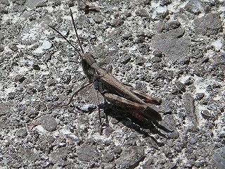 【左】「生き物たちの谷」で虫探しです         【中】また何か見つけました          【右】ヒナバッタ