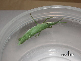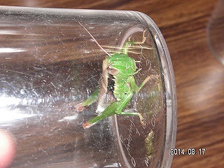 【左】コオイムシとマダラバッタ 【中】クサキリ 【右】ウチワヤンマ