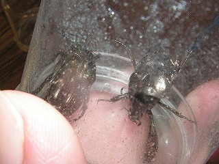 【左】カブト発見 【中】蛇が寝池のふちでトンボ採集です 【右】アブラゼミ