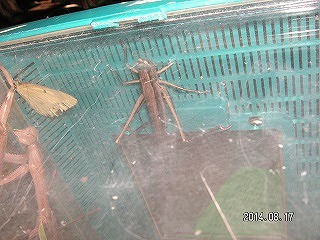 【左】ウスバキトンボ 【中】エンマコオロギ 【右】チョウセンカマキリ?(前足の付け根が橙が特長)