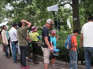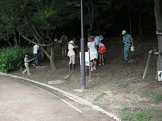 朝ドン曇り、観察会が終わるまでずっと曇りで蒸し暑い日でした。9:30から市職員のあいさつ、コース説明、指導員紹介の後、村瀬さんが注意事項を説明して観察に出かけました。いつものように「生きもの達の谷」を左回りに一周して生き物を探しました。土手の草むらにはショウリョウバッタが多く、イトトンボ(アジア)がうじゃうじゃいて驚きました。西の林ではカブトムシやシロテンハナムグリ、ゴマダラカミキリなどが見つかり子供たちが喜びました。次に「命の池」周辺を探しました。トンボやバッタが少ないながら見つかりました。そして「蛇が寝池」に向かいました。途中の草むらはバッタが多く、道端のどんぐりの木でカブトムシが見つかりまた盛り上がりました。蛇が寝池では時間が無くなり早々に観察を済ませて交流センターへ急ぎました。交流センターのレクチャールームで村瀬さんがまとめをしました。今回もみんなの虫かごに私の見てない虫がいっぱい入っていていつもながら多くの目はすごいと思いました。特にウチワヤンマを捕らえた門脇さんには皆感心しました。捕まえた虫はすべて放すことにして観察会を終了しました。(記・平松俊)