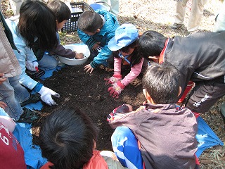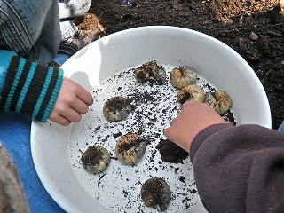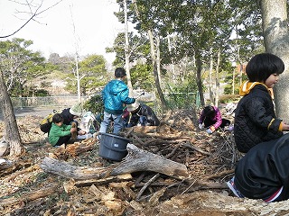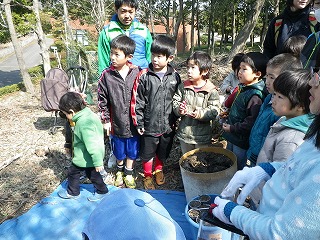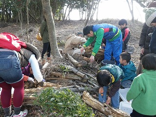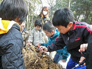 【左】朽ち木の生きもの探し(7) 【中】カブトムシ(幼虫)探し開始 【右】カブトムシ(幼虫)探し