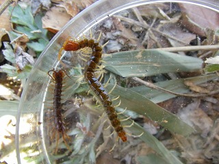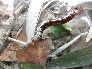 【左】キマワリ(幼虫) 【中】ナガニジゴミムシダマシ 【右】トビズムカデ
