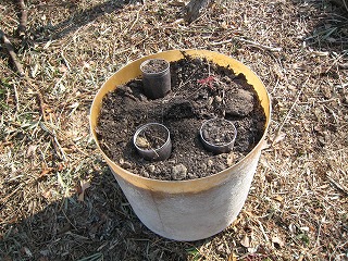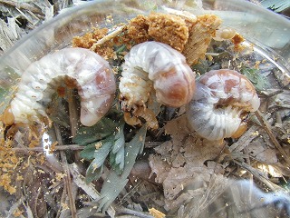 【左】成育中のカブトムシ(幼虫) 【中】カブトムシ(幼虫)探し 【右】カブトムシ(幼虫)