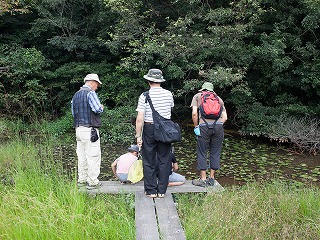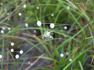 高根湿地ではたくさんのシラタマホシクサがみられ,サワヒヨドリ,ホザキノミミカキグサの花もみられました。湿地内の池ではヒメタイコウチなどの水棲生物も観察できました。(記・澁谷)