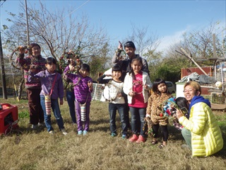 終わってからの自由遊びで泥んこに靴がはまった子が3人いましたが、お父さんが靴を洗ってあげてて微笑ましい光景でもありました。