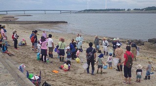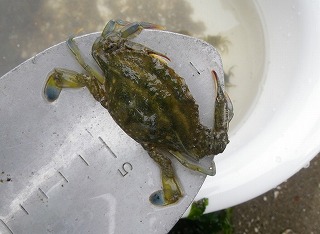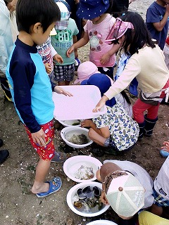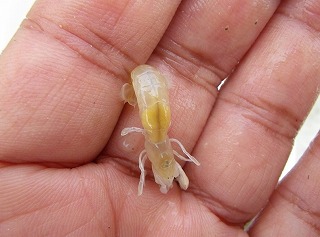 【左】ニホンスナモグリ 【右】捕獲した海辺の生きものの説明の始まり