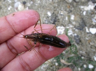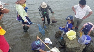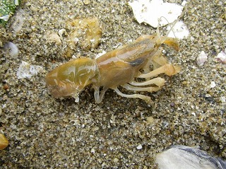 【左】親子でカキでも獲っているのかな 【中】テナガエビ 【右】アナジャコ