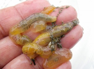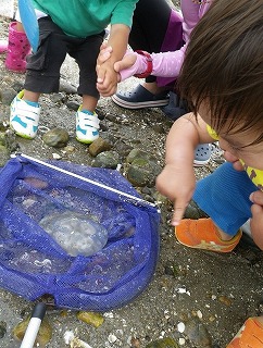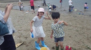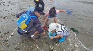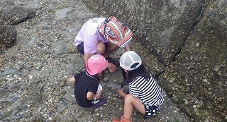 【左】ガザミをゲット! 【中】私ヌメヌメツルツル大好き 【右】親子で穴掘りにいそしんでいました